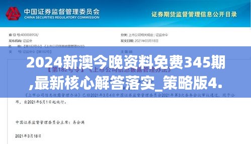 澳门特别行政区政府持续致力于提高政策透明度,确保市民能够轻松获取最新的政策信息。在此,我们将详细介绍“2024新澳今晚资料免费345期,最新核心解答落实_策略版4.607”,这是一项旨在加强政策执行和居民沟通的新政策文件。