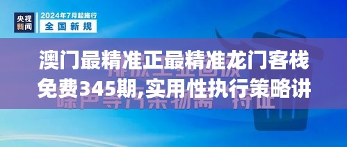 在澳门的发展中,准确的政策制定和高效执行力是保持地区竞争力的关键。本文章旨在详细阐释澳门最精准的政策实施策略,特别针对"最精准正最精准龙门客栈免费345期"的开发版6.957。通过实用性执行策略讲解,我们力求为澳门的决策者和政策执行者提供切实可行的方案,确保政策的有效性和精准性得以完整实施。