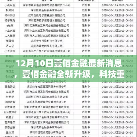 随着科技的飞速发展,金融领域也在不断创新突破,在这个数字化时代的前沿,壹佰金融于12月10日带来了令人瞩目的最新升级消息,我们将为您详细介绍壹佰金融的高科技新品,聚焦于其最新的功能亮点与使用体验,展现科技如何深度改变生活,激发每一位科技爱好者的浓厚兴趣和无限想象。