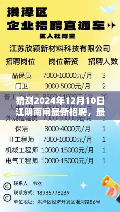随着时代的进步和经济的发展,越来越多的人开始关注就业市场的新动态,本文将针对即将来临的江阴南闸地区在2024年12月10日的最新招聘情况,为求职者提供一份详尽的求职攻略,无论您是初入职场的初学者,还是寻求新机会的进阶用户,本文都将引导您如何高效获取招聘信息,准备应聘材料,以及应对面试等各个环节。