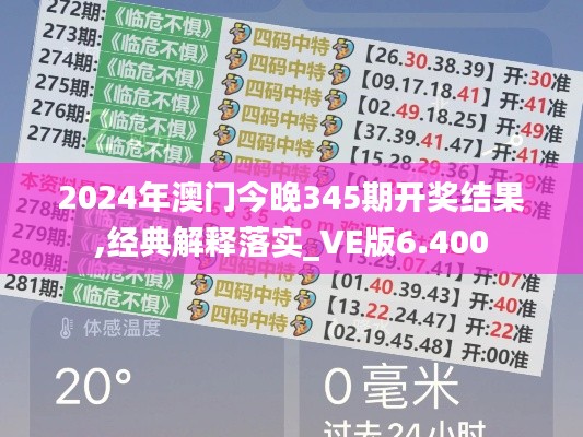 2024年澳门今晚345期开奖结果已正式揭晓,在澳门特别行政区政府的主持下,卫生局及相关职能部门共同参与和监督下,该期彩票开奖结果获得妥善公布。为响应广大澳门市民的关注,本次VE版6.400文件将对开奖结果做出经典解释,落实政策的同时也展示了澳门彩票的透明度和公证性。