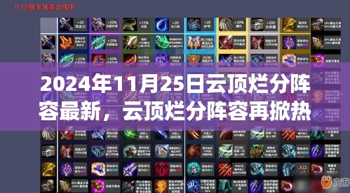 随着科技的进步和游戏产业的飞速发展,我们迎来了一个崭新的时代,在这个时代里,电子竞技游戏以其独特的魅力吸引了无数玩家的目光,而在众多游戏中,《云顶之弈》以其独特的战略战术和丰富的游戏阵容,成为了众多玩家钟爱的对象,我们将聚焦于2024年11月25日,关于云顶烂分阵容的最新动态,以及这一变革在游戏领域所带来的深远影响。