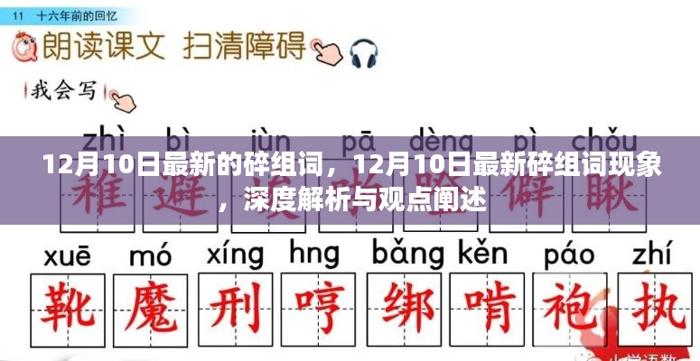 随着网络文化的飞速发展,词汇创新日新月异,特别是在当下这个信息爆炸的时代,新词的产生和传播速度比以往任何时候都要快,12月10日,网络上涌现出了一批最新的碎组词,这些词汇独特、富有创意,引发了广大网友的关注和热议,本文旨在围绕这一现象,阐述个人的观点和看法。