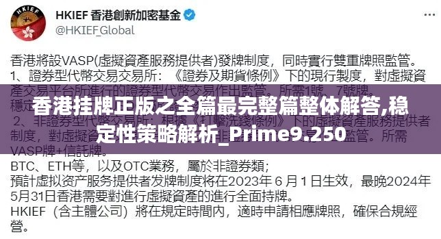 香港特别行政区作为中国的重要组成部分,拥有独立的法律体系和经济体制,与中国内地发展有着密不可分的关系。对于此次“香港挂牌正版之全篇最完整篇整体解答,稳定性策略解析_Prime9.250”的政策文件发布,象征着澳门特别行政区政府对香港特别行政区的关注与支持,加强两地在法律、经济、文化等多个方面的交流合作。以下是就有关政策文件的详细解析,以推广两地友好发展为己任,共谋大中华区域和谐共赢未来。