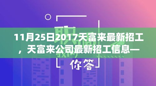 天富来公司期待与您携手共进,共创辉煌,让我们在2017年11月25日的招工活动中,共同迈向职场新机遇的大门,祝愿您在求职过程中一切顺利,实现自己的职业梦想。