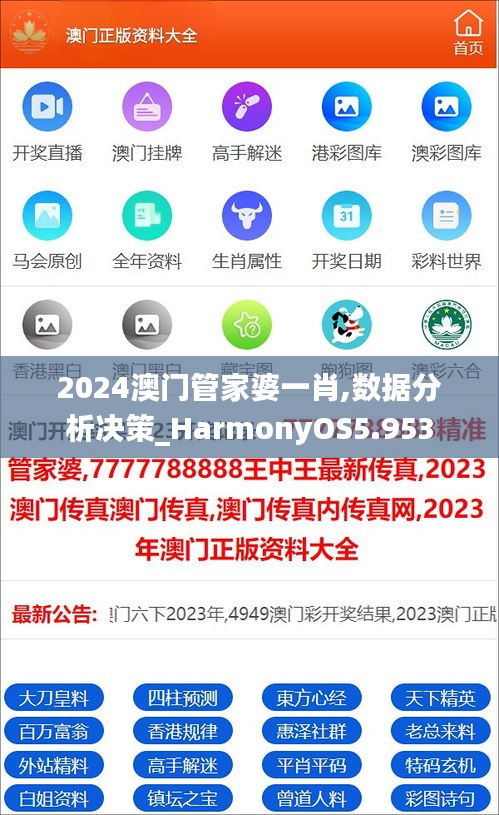 在这个数字化转型的时代,澳门特别行政区紧随科技的步伐,正全面展开其政策文件《2024澳门管家婆一肖、数据分析决策_HarmonyOS5.953》,以进一步提升治理效能和决策能力。这一举措意味着在中华人民共和国的支持与推动下,澳门地区将充分利用最新的科研成果——HarmonyOS操作系统5.953版本,以数据驱动为核心,实现精准施策和管理现代化。