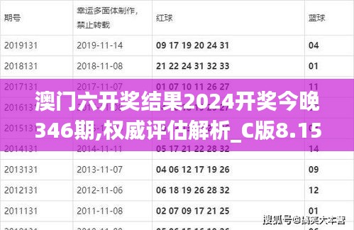 尊敬的澳门居民和彩票爱好者们,澳门彩票业是澳门经济体系中不可或缺的一部分。今天我们为您提供最新的开奖信息分析以及权威评估。本文主要针对“澳门六开奖结果2024开奖今晚346期”进行深度解析。作为权威评估解析的C版8.157版本,我们将提供详尽的开奖结果信息,并结合历史数据分析未来的可能趋势。以下是具体内容。