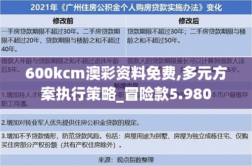 在当今全球化不断深入发展的背景下,澳门作为一个国际化的城市,始终保持着对多元文化和经济的开放态度。特别地,在旅游、娱乐和金融领域,澳门不断推出新的政策和措施以促进行业发展,增强城市竞争力,并为广大居民和游客带来更多便利和实惠。此次发布的“600kcm澳彩资料免费,多元方案执行策略_冒险款5.980”政策文件,旨在进一步贯彻落实中央政府对澳门特别行政区的支持和指导,促进澳门经济社会持续健康发展。