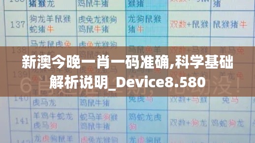 近日,澳门特区政府发布了关于"新澳今晚一肖一码准确,科学基础解析说明_Device8.580"的最新政策文件,旨在详细解读该政策的科学依据和实际意义。以下是该政策文件的详细解读,以帮助读者更好地理解这一重要政策。