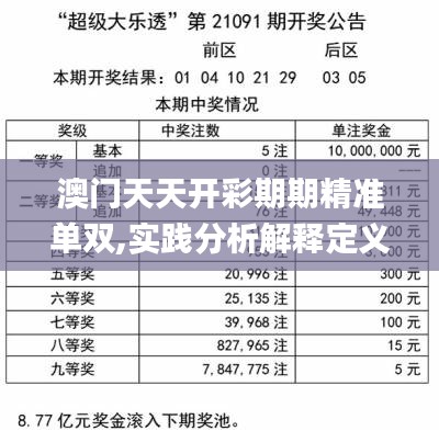“澳门天天开彩期期精准单双”是一个关于赌博频率和类型的综合性政策文件,从字面上理解,其主要包括两部分内容:一是赌博的频率,即“天天开彩”,在对赌业频率的界定上,文件规定澳门所有的赌博活动要以日为频率单位,每天均应开展赌博娱乐活动;二是赌博的额度类型,即“期期精准单双”,文件规定赌博的额度也要有严格界限,每次赌博的最大金额为单双,其中,单指1万元,双则为2万元。