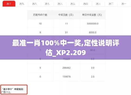 在当今的博彩业,其中一个最令人关注的主题就是如何提高中奖的准确性。有很多人使用了不同的策略和计算方法来预测结果,其中一些方法声称拥有极高的准确性。然而,我们需要注意的是,博彩活动的结果本质上是随机的,因此没有任何方法可以保证100%的中奖率。本文旨在对这一现象进行定性分析,特别是针对所谓的“最准一肖100%中一奖,定性说明评估_XP2.209”来探讨其实质和背后的原因。