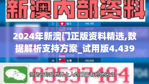 随着澳门特别行政区在2024年步入新的发展阶段,为更好地促进澳门多元经济发展和持续繁荣,澳门特别行政区政府特推出“2024年新澳门正版资料精选,数据解析支持方案_试用版4.439”。该方案旨在通过大数据和先进的数据分析技术,为澳门的企业和个人提供深度数据解析,支持创新和决策,以及预防和解决问题的方案。