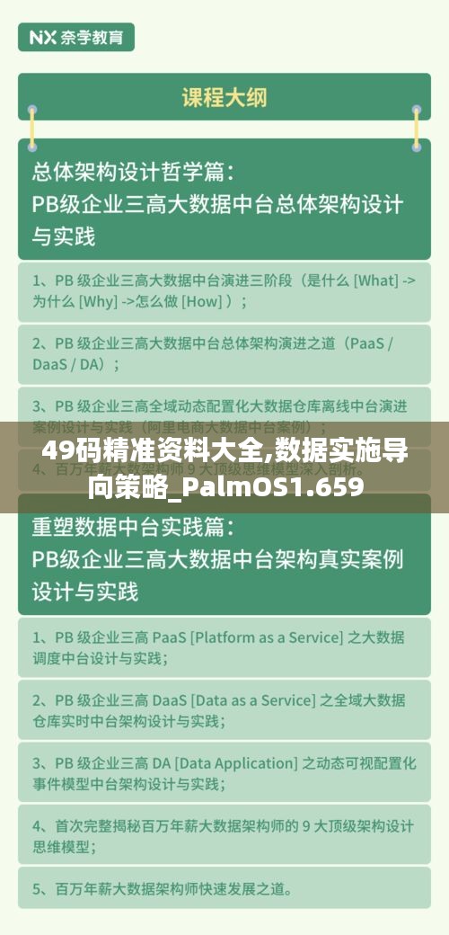 "数据实施导向策略_PalmOS1.659"是一种基于数据和算法的操作方式,它能够对"49码精准资料大全"中的数据进行深入分析,并根据这些数据预测、规划和优化政策的执行路径。这种方法论确保政策的实施能够以数据为依据,有效提高政策的相关性和效果。
