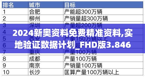 “2024新奥资料免费精准资料,实地验证数据计划_FHD版3.846”是一项旨在提高政策材料准确性和可靠性的新举措。该计划的核心目标是打造和完善澳门数据服务体系,为政策制定和创新发展提供详实、精确、实时的数据支持。