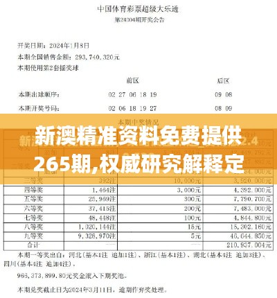 在澳门特别行政区,政策文件一直是指导和影响当地社会经济发展的重要文件。近日,“新澳精准资料免费提供265期,权威研究解释定义_8DM10.737”文件吸引了广泛关注和讨论,今天我们就来对该政策文件进行深度解读,为各位市民提供更加清晰的政策理解。