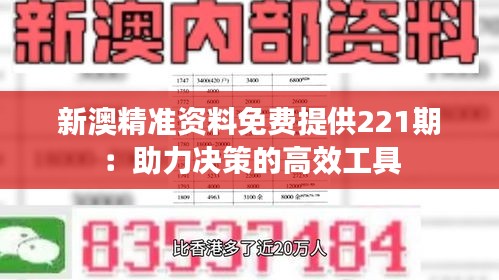 “新澳精准资料免费提供221期:助力决策的高效工具”不断追求提供最精准、最权威的资料,旨在帮助每一位决策者在澳门这个多元化的城市中把握机遇,做出正确的决策。我们相信,通过我们的努力,澳门的决策效率和质量将得到质的飞跃,为澳门的持续繁荣和发展做出积极贡献。