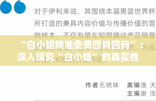 转载请注明来自工巨商城,本文标题:《“白小姐精准免费四肖四码”:深入探究“白小姐”的真实性》