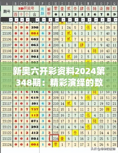 随着澳门特色博彩业的蓬勃发展,新奥六开彩资料2024第348期为彩民们带来了一个全新的数字游戏盛宴。本期新奥六开彩不仅延续了老澳门六合彩游戏的精髓,更注入了创新的元素,使得整个游戏过程更加精彩刺激,充满了无限可能。让我们一起深入了解这期新奥六开彩资料2024第348期:精彩演绎的数字游戏,感受其独特的魅力吧。