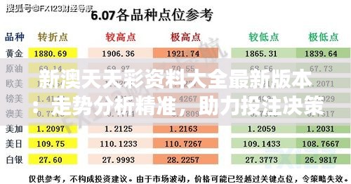 综上所述,“新澳天天彩资料大全最新版本:走势分析精准,助力投注决策”是我们为澳门彩民量身打造的资料大全。我们致力于为投资者提供全方位的服务和支持,帮助您做出更科学的投注选择。请牢记,市场瞬息万变,拥有正确的资讯和明晰的策略是走向成功的第一步。“新澳天天彩资料大全最新版本”将始终与您同行,在澳门的投注世界中指点江山。