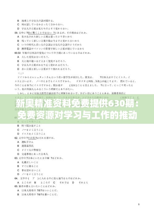 在全球数字化浪潮和知识分享的背景下,新奥精准资料免费提供630期项目应运而生。本项目旨在汇聚高质量的学习与工作资料,为用户提供便捷的获取渠道,进一步发挥免费资源在推动人们学习与工作中的积极作用。通过这些免费资源,人们可以更高效地获取知识,提升个人能力与工作绩效,促进社会经济效益的发展。