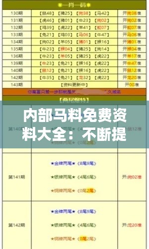 "内部马料免费资料大全:不断提升的赛马资料宝库"是一个全方位、多层次的赛马资料的集散平台,致力于打造一个集资料下载、资讯交流、马匹数据查询集合一体的大型综合型信息资料库。它不仅能满足普通市民和马术爱好者广泛的信息需求,还能为专业的马匹训练师、竞速赛马运动员、投资者提供更为专业、详实的数据分析和服务。