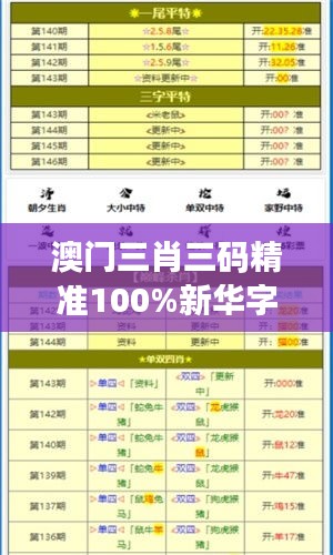 澳门三肖三码精准100%新华字典348期,成为赢家的通关秘籍,是每个澳门博彩爱好者梦寐以求的完美法宝。在充满挑战和机遇的澳门博彩世界中,精准的肖码分析和预测,无疑是赢得胜利的重要条件。下面,我们将深入探讨澳门三肖三码精准100%新华字典348期的通关秘籍,让你在澳门博彩的世界中游刃有余,成为真正的赢家。