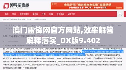 澳门雷锋网官方网站是澳门政府为了更好地向公众提供政策信息、解答疑问而设立的官方平台。网站以其简便的导航、信息丰富和实时更新受到了广大市民和企业的关注和欢迎。《澳门雷锋网官方网站,效率解答解释落实_DX版9.402》的发布,进一步增强了该网站的权威性和实用性。