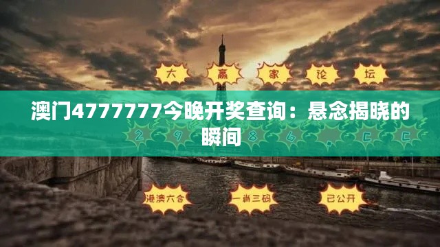 希望这篇文章能够帮助大家更深地了解澳门4777777今晚开奖查询,悬念揭晓的一瞬间的情景与感受,以及澳门彩票的独特地位和影响力。