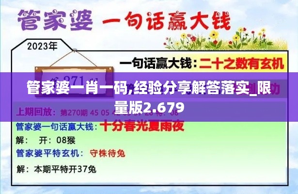 简而言之,“管家婆一肖一码”即是一个独特的编码系统,用以标记和追踪政策文件从起草到执行的每一个环节。在澳门,这一概念被运用于政策文件的发布与管理中,以“管家婆一肖一码”作为标识,确保每份文件的独特性和追踪性,从而提高了政策执行的透明度和责任性。在澳门政策文件的众多版本中,“限量版2.679”以其专属的“管家婆一肖一码”为特点,保证了文件的准确性和唯一性。