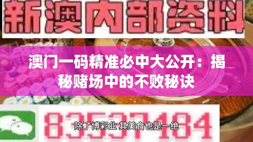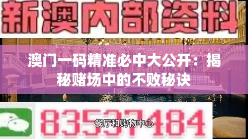 在澳门这个东方赌城,赌场是名副其实的金字招牌,吸引着来自世界各地的游客。赌场里的博弈不但带来紧张刺激的体验,更让不少人为追求财富与时间进行智力、运气的较量。今天,我们将深入探讨澳门赌场中的不败秘诀——"澳门一码精准必中大公开",揭秘那些隐藏在光鲜掩饰之下的真正玩法。