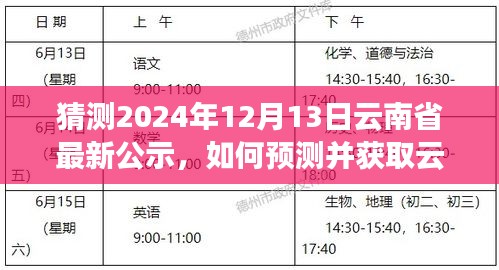 随着信息化的发展,获取各类公示信息变得越来越重要,本指南旨在帮助初学者和进阶用户了解如何预测并获取云南省即将在特定日期(如2024年12月13日)发布的最新公示,通过遵循以下步骤,您将能够轻松完成这一任务。