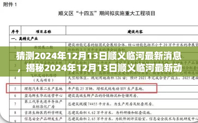 关于2024年12月13日顺义临河的最新消息,我们可以从以下几个方面来猜测和展望:
