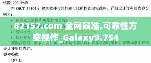 在信息技术飞速发展的今天,准确而可靠的方案操作已经成为了对数据安全、稳定性以及业务连续性的关键要求。本文以"82157.com 全网最准, 可靠性方案操作_Galaxy9.754"为题,旨在探讨在当前复杂多变的网络环境下,如何通过高效、安全的策略来确保网站和系统的可靠性和准确性。