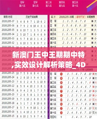 澳门,这座闪耀于南中国海的独特城市,始终在积极寻求自我革新与发展。随着时代的发展和全球化的不断深入,澳门正致力于实现更加开放、包容和现代化的城市定位。本文将聚焦于澳门最新政策文件中提到的“新澳门王中王期期中特,实效设计解析策略_4DM5.662”,探索这一策略如何在澳门的发展蓝图中扮演至关重要的角色。