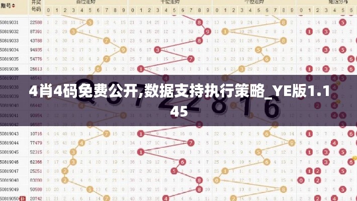 "4肖4码免费公开,数据支持执行策略_YE版1.145"的实施,既可以提高政策透明度,提升政策查询效率,促进政策信息交流与互动,又可以针对性的解决政策执行过程中的问题,提高政策执行的效率和效果。