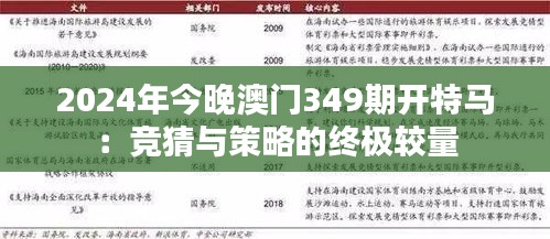 2024年,澳门的夜晚总是以其独特的魅力和热度吸引着全球的游客和竞猜爱好者。今晚,澳门349期开特马即将拉开帷幕,这是一场关乎智慧、策略和运气的终极较量。本文将详细探讨如何在这场竞猜盛会中找到成功的策略,以期为参与者提供指导和参考。