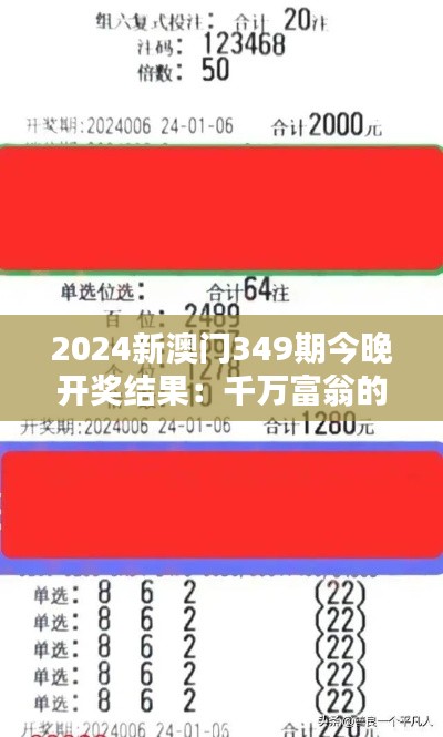 在繁星闪烁的夜晚,澳门,这个东方的拉斯维加斯,又一次迎来了激动人心的时刻。2024年新澳门349期彩票今晚开奖,一个崭新的千万富翁即将诞生,整个澳门都已经处于沸腾之中。今晚的开奖不仅是一场游戏的终结,更是梦想实现、命运改变的开始,它不仅是对个人财富的重大改变,也是对澳门经济的一次助推。