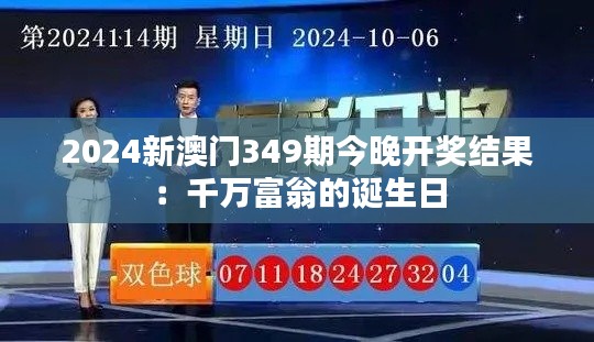 转载请注明来自工巨商城,本文标题:《2024新澳门349期今晚开奖结果:千万富翁的诞生日》