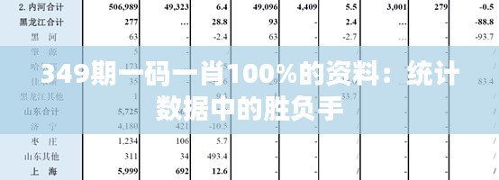在任何游戏中,统计数据常常被看作是制胜的关键。因为我们通过统计数据可以了解概率、趋势以及各种可能的结果。在本期349期一码一肖分析中,我们也深入利用了这些数据的力量。