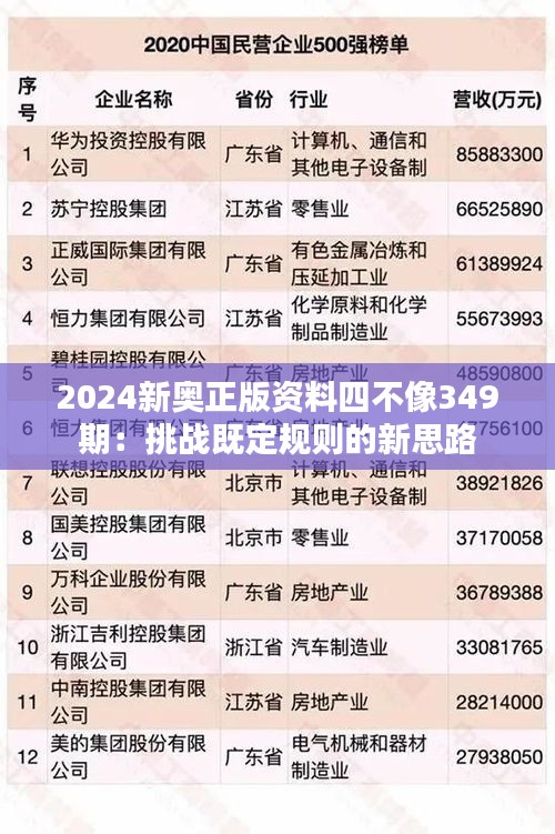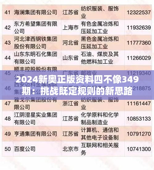 2024新奥正版资料四不像349期:挑战既定规则的新思路