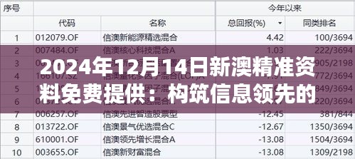 2024年12月14日新澳精准资料免费提供:构筑信息领先的优势