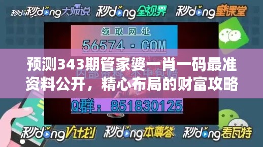 综上所述,"预测343期管家婆一肖一码最准资料"的公开,无疑为澳门博彩爱好者提供了一个全新的财富攻略途径。通过精心布局,我们还将继续深化资料的研究,不断优化和更新,为读者带来更加精确、实用的预测信息。我们不仅是提供预测的平台,更是传递智慧、教授财富增长方法的窗口。愿每一份“预测资料”都成为您财富增长的指南针,引导您在博彩世界中稳健前行。
