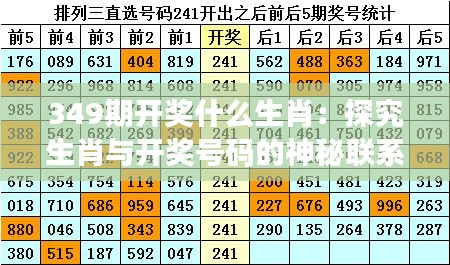 为了更深入了解生肖与开奖号码的神秘联系,我们还需要对各类生肖的运势进行仔细的解析。每个生肖都有其特定的特点和性格,而在不同时期运势也会有所不同。通过对生肖运势的解析,我们可以更好的把握"349期开奖什么生肖"的问题,预测开奖号码,增加博彩的乐趣和神秘感。