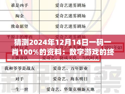 转载请注明来自工巨商城,本文标题:《猜测2024年12月14日一码一肖100%的资料:数字游戏的终极挑战》