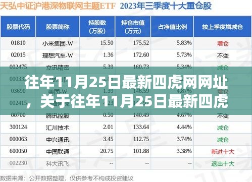 随着互联网的普及与发展,各类网站如雨后春笋般涌现,四虎网作为一个知名的网络社交平台,一直备受关注,尤其是每年的11月25日,四虎网会更新其网址,吸引大量用户前来访问,本文将围绕“往年11月25日最新四虎网网址”这一主题展开论述,从不同角度探讨其影响及价值,同时阐述个人立场和观点。