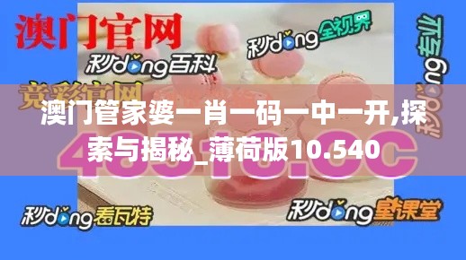 在当今社会,随着信息技术的飞速发展,人们对于数据隐私和数据安全的需求日益增长。在这样的背景下,“澳门管家婆一肖一码一中一开,探索与揭秘_薄荷版10.540”成为了一个备受瞩目的话题。这一概念不仅融合了澳门特区的政策优势,也加入了全新的技术和理念,旨在为用户提供一个安全、便捷、高效的数据处理平台。
