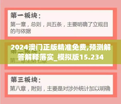 "2024澳门正版精准免费,预测解答解释落实_模拟版15.234"政策是澳门特区政府关注民生、优化服务的重大举措。15.234政策精准免费服务于澳门居民,旨在通过提供完整的预测解答、细致的解释落实,为澳门居民提供更为便捷、高效的生活服务,满足他们对所有政策信息和办事程序的需求。
