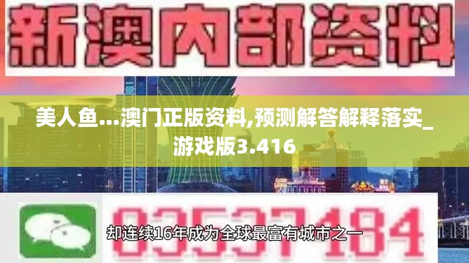 澳门特别行政区游戏界最新动态来袭,今天就带大家深入了解一下"美人鱼…澳门正版资料,预测解答解释落实_游戏版3.416"。如果您也是资深的游戏爱好者,那么这款自澳门地区独立研发,专门针对本土文化、经济环境量身定做的豪华旗舰游戏版本,绝对不容错过!接下来我们将从多个角度带您探索这款游戏是如何与澳门特色相结合,并提供娱乐政策的专业解读。