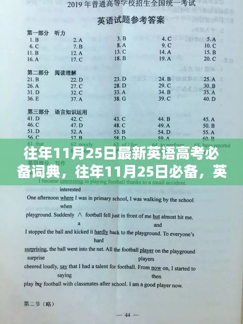 随着高考日益临近,对于即将参加英语高考的学子们来说,一本合适的英语高考词典是备考路上的得力助手,本文将为您介绍往年11月25日最新英语高考必备词典,助您高效备考,轻松应对高考挑战。