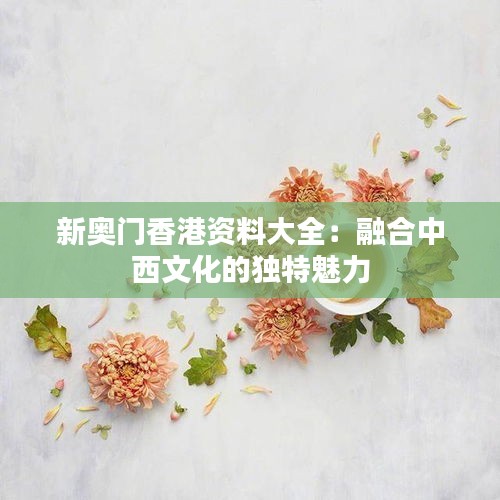 转载请注明来自工巨商城,本文标题:《新奥门香港资料大全:融合中西文化的独特魅力》